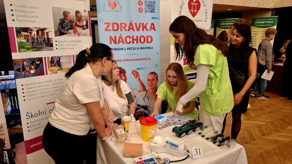 Letos jsme postupně představili naši školu v několika městech – v Trutnově, v Rychnově nad Kněžnou, v Náchodě a v Hradci Králové. Zájemci o studium u nás získali přehledné informace o třech oborech, které nabízíme: Praktická sestra, Sociální činnost a Ošetřovatel.
